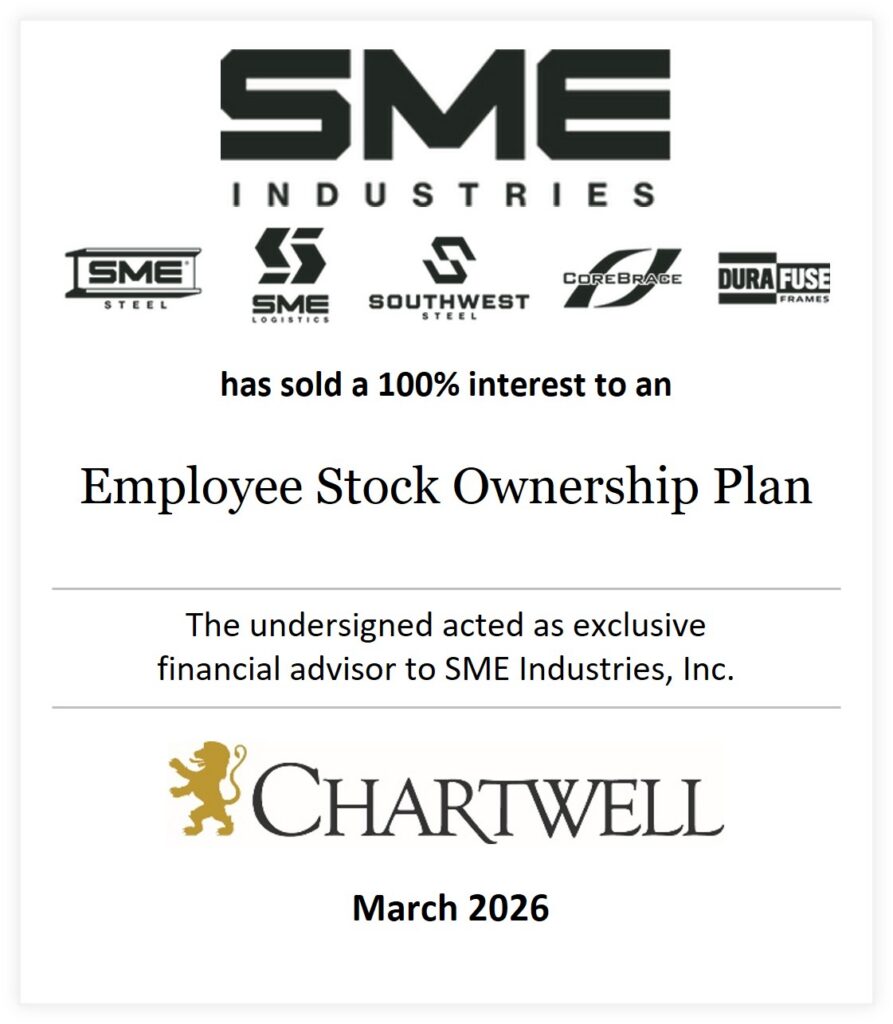 Chartwell is pleased to announce SME Industries, Inc., a leading, full-service steel fabrication and erection company, has transitioned ownership to an Employee Stock Ownership Plan (“ESOP”). Following decades of independent ownership, the shareholders of SME explored ownership transition alternatives that would preserve its legacy and elected to sell to an ESOP to reward its employees for their ongoing and future contributions.